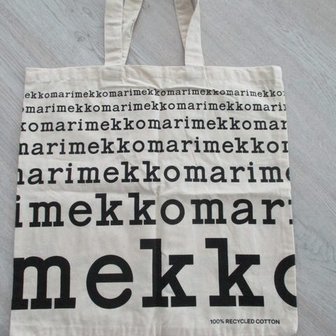 Myydään kuvassa oleva Marimekko vaalea logokassi, jossa musta teksti.