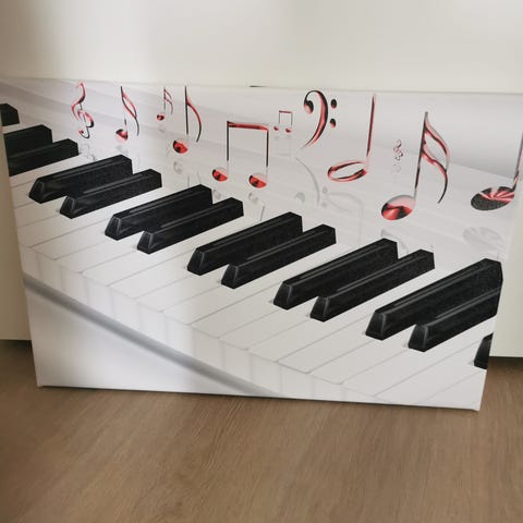Myydään beigesävyinen canvastaulu, joka ns. kodinhoitohuonehenkinen.