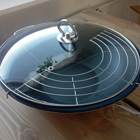 Myydään kuvan mukainen wokkipannu kannella. Halkaisija 34 cm.