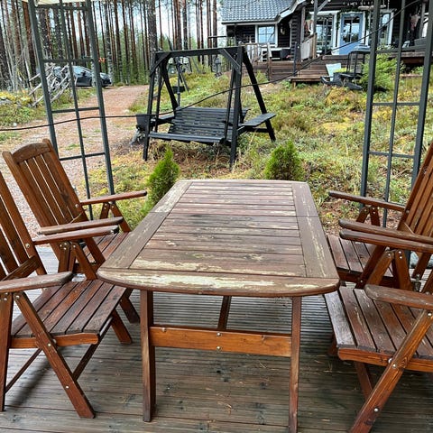 Valkoinen puinen IKEA terassipöytä HATTHOLMEN. Harvoin käytetty. Purettu.