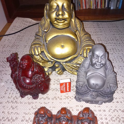 Kaksi miniatyyri patsasta Buddha Shakyamuni ja Buddha Siddhartha Gautama