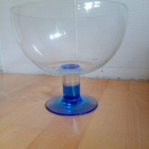 Iittala Malja lasikulho meripihkanvärinen. Suunnittelija Tapio Wirkkala. Halkaisija 26,5cm ja korkeus 8,5cm Painaa 3,4kg. Pienen pieni vaurio yläreunassa(näkyy toisessa kuvassa).
