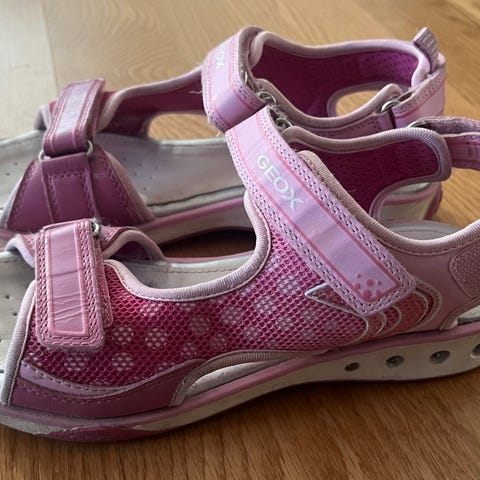 Geox lasten tennarit, koko 37. Valkoiset tennarit, joissa on pinkit nauhat ja perhoskuviointi.