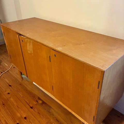 Sievä TEAK-kaappi, lukko toimii, takalevy irti