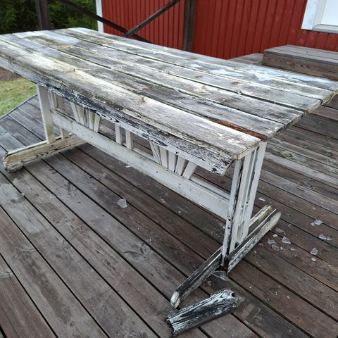 Metallinen roskis, joka kaipaa pesua. Kaipaa myös muutaman ruuvin pysyäkseen kasassa. Pienellä tuunaluksella kelpo roskis.
