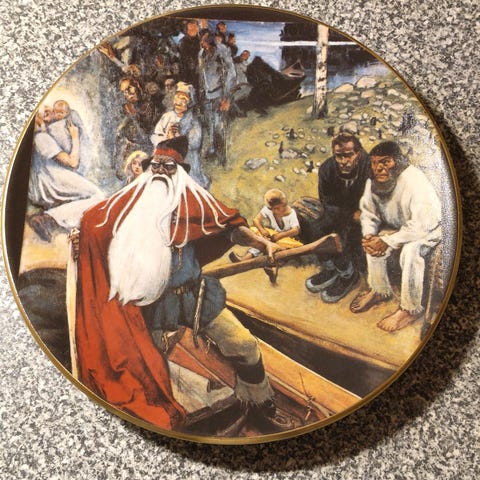 Arabia, Akseli Gallen-Kallela "Väinämöisen lähtö" Kalevala nro 6 seinälautanen, mittoja lautasen halkaisija n.22,5cm