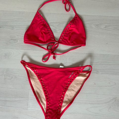 Yläosa kokoa 40 ja alaosa kokoa M, korkea vyötärö.