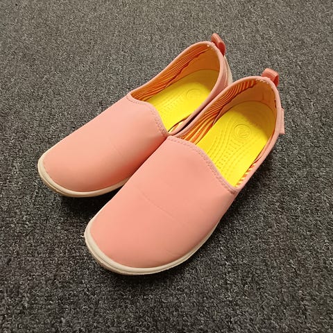 Itse Crocs:lta ulkomailta tilasin kahdessa eri koossa, koska mulla on 38 ja 39 -koon kenkiä. Isommat mulla käytössä ja voin kokemuksesta sanoa, että istuu jalkaan kuin sukka, ovat aivan olemattoman kevyet ja pehmeät, supermukavat kengät. Kuin pilvillä kävelisi, loistavat jos pitää olla jaloillaan paljon. Ergonominen pohjamateriaali on valmistettu tärähdyksiä vaimentavasta materiaalista ja irrotettavat slip-resistant pohjalliset on suunniteltu paljaaseen jalkaan hyvin pitäviksi, mutta toimivat aivan hyvin myös sukkien kanssa. Päällinen taipuisaa soft shell-materiaalia. Harvinainen malli.