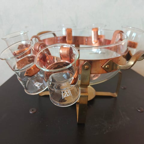 Glögimalja,alusta sekä kupit.