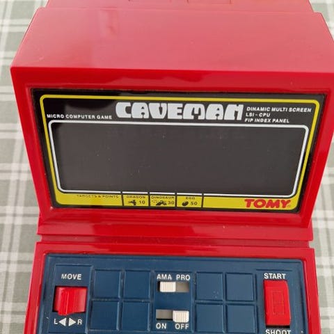 Tomytronic Tron pelikonsoli, jossa on sininen ohjauspaneeli. Konsolissa on yksinkertainen ohjausjärjestelmä, joka sisältää ohjaus- ja ampumispainikkeet. Sopii retro-pelaajille ja keräilijöille. Vuodelta 1981. Ensimmäiseltä omistajalta.