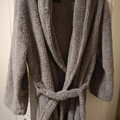 Ihanan pehmeä/fleecemäinen, mustalla pohjalla oleva kukkakuvioinen kylpy/aamutakki. Takissa avotaskut, kiinteä huppu ja irtovyö. Kokomerkintä L (44-46), Livarnon merkiltä. Jäänyt kaappiin, kun ei ollutkaan itselle sopiva.