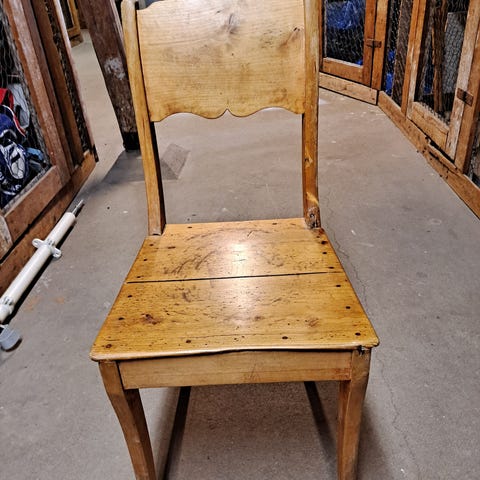 Erittäin tukeva ja hyväkuntoinen, vanha puutuoli. Istumakorkeus 42cm.