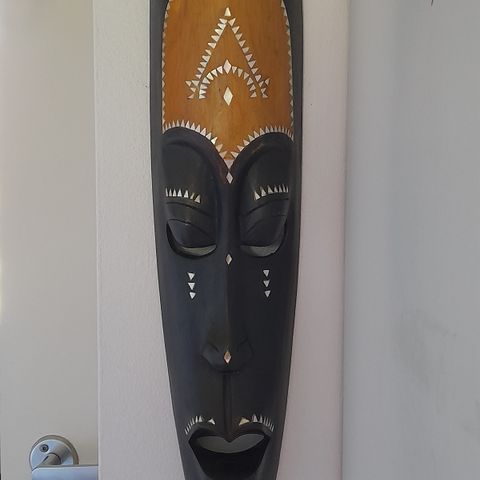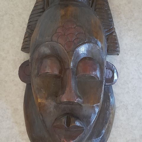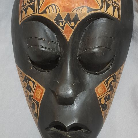 Hyvässä kunnossa oleva seinälle ripustettava koristemaski. Muutama kolhu saattaa olla.