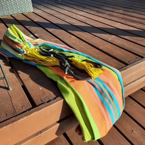 Koko 80x220 cm. Puuvillaa veikkaisin materiaalin olevan. Mukana säilytyspussi johon on tullut pieni reikä.