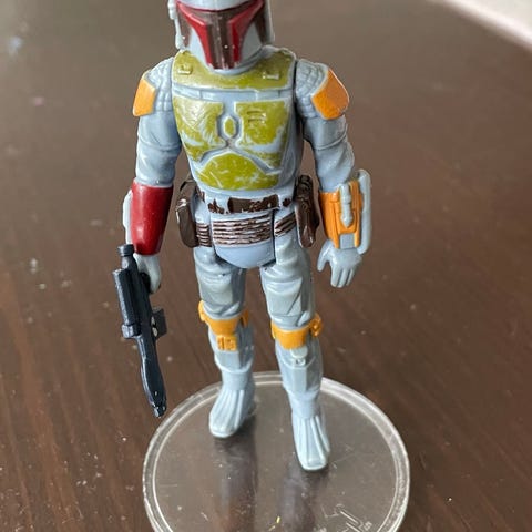 Vintage Kenner Star Wars Boba Fett ja ase, huomattavasti vaaleampi ja ilman valmistumaa stanssia, ilmeisesti PBP/Trilogo variantti ruskealla vyöllä, maalatulla polvisuojalla ja maalamaton "ranneohjus". Nouto Lohjalta tai postit ostajalle.