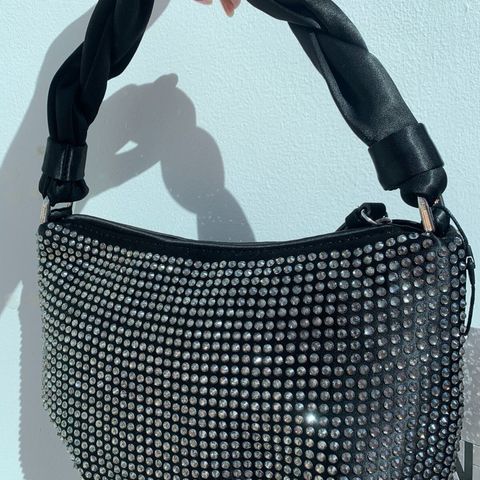 Laukussa on pitkä hopeanvärinen ketjuhihna. Laukun päällä on solmittu kahva, joka on päällystetty myös strasseilla. Laukku suljetaan kahdella magneettilukolla. Sopii erinomaisesti juhla- tai iltalaukuksi.