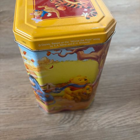 Nalle Puh peltipurkki keräilysarja 8/12. Ehjä ja siisti kunnoltaan, kunto näkyy kuvissa. Korkeus n.17 cm, leveys n.11 cm.