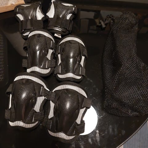 Polvisuoja, kyynärpääsuoja ja rannesuoja lapsille. Suojasarja pyöräilyyn, rullalautailuun. Helppo pukea ja kiinnittää tarranauhalla.
