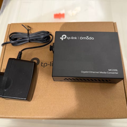 Kuvan mukainen mediamuunnin, toimii, mukana 1m kuitupari.
