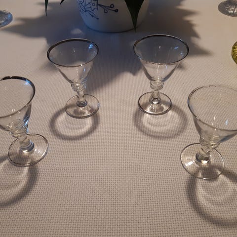 Tyylikkäät korkeat jalalliset liiköörilasit Irlannista.