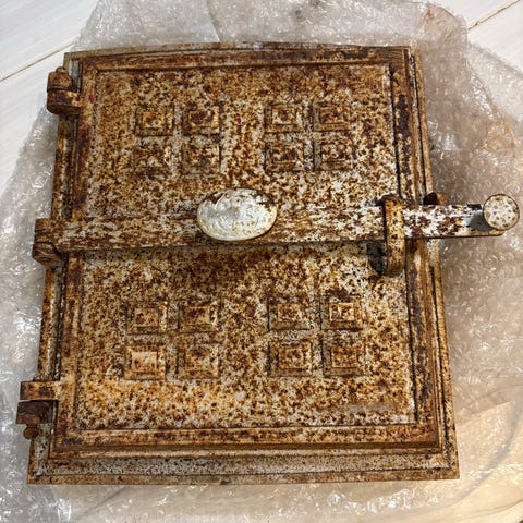 Myydään ajan patinoima tuplaovinen takkaluukku sekä 2kpl nuohousluukkuja.