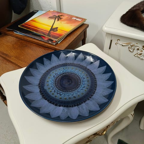 Halkaisija 45.5 cm. Korkeus 4 cm. Erinomaisessa kunnossa. Ei vikoja. Signeerattu "Arabia LH". Postitus 10€