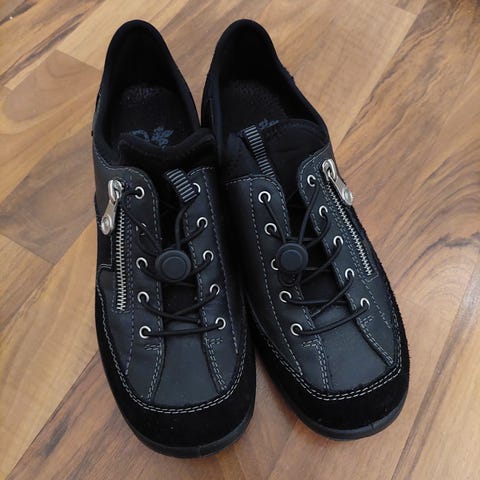 Valkoiset Riekers kengät koko 38, vähän pidetyt. Jalkapöytätila tilava.