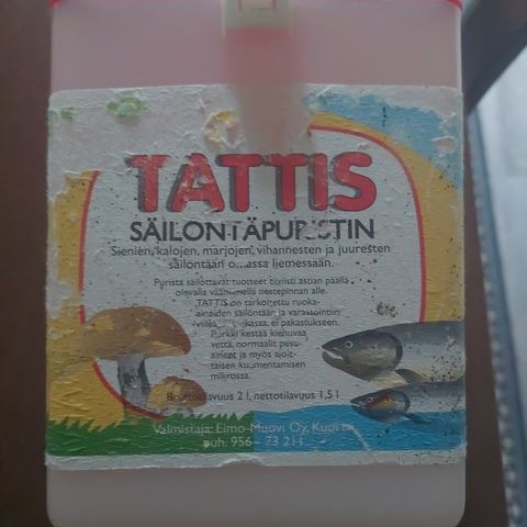 Uusi Tattis säilöntäpuristin säilöö sienet, kalat, marjat ja vihannekset omassa liemessään. Astian päällä oleva väännin pitää säilöttävät tuotteet tiivisti nestepinnan alapuolella. Purkki kestää kiehuvaa vettä, normaalit pesuaineet ja myös ajoittaisen kuumentamisen mikrossa. Ei pakastukseen. Sienisäilöntä, kalasäilöntä, marjasäilöntä…