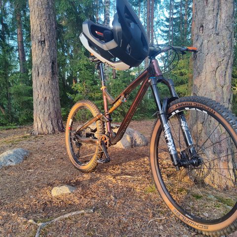 Slopedurotyylisesti kasailtu fillari myyntiin täysin dirttihommiin siirtymisen johdosta. Paljon käyttöä nähnyt ja se kyllä näkyy. Todella hyvin palvellut niin dirttinokissa kuin kalpiksen legendaarisissa leiskautuksissa.