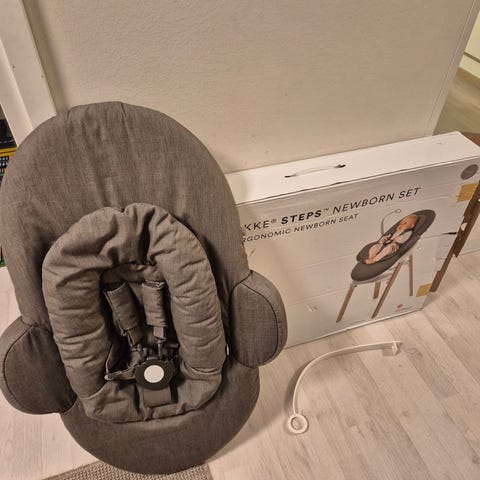 Myydään Stokke Steps Newborn Set, eli vastasyntyneen sitteriosa. Tyylikästä norjalaista designia, väri harmaa. Siisti kuin mikä!