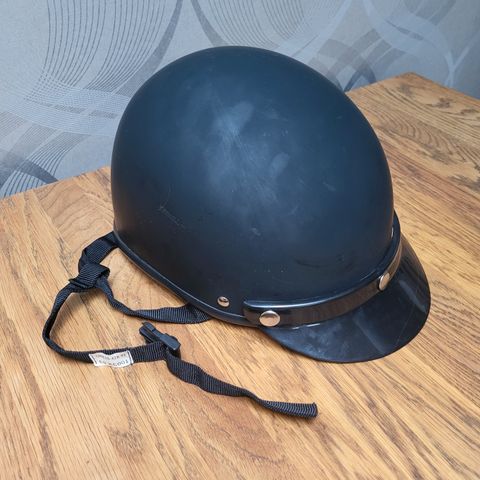 Mustan kypärän kaulahihnasta puuttuu pala, mutta helppo korjata