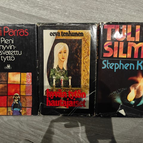 Paljon luettuja kirjoja. Käytön jälkiä löytyy. Mutta vielä luettavissa.