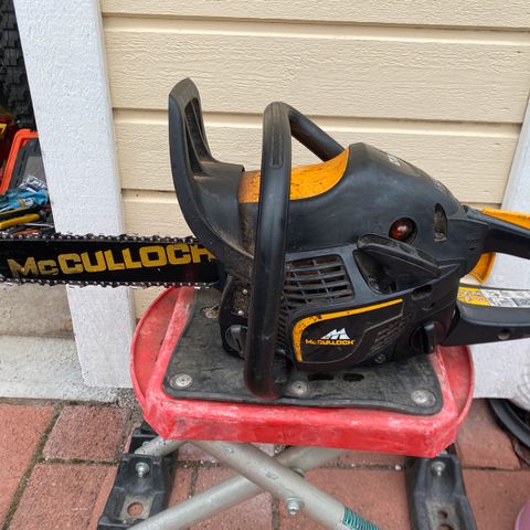 Korjattavaksi tai osiksi. Kaikki osat näyttäisivät olevan tallessa ja saha vaikuttaa suht hyväkuntoiselta.