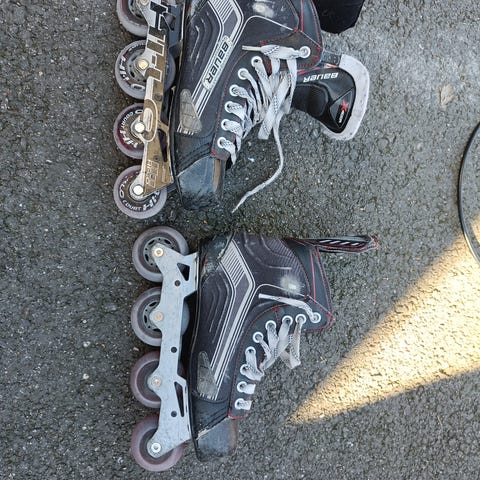 Hyvässä käytetyssä kunnossa olevat rullaluistimet. Pientä kulumaa paikoin.