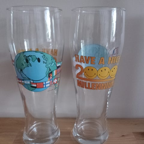 Franklin Loufranin Millenium 2000 Smile painatuksilla olevat lasituopit. Hyväkuntoiset. Ei käytön jälkiä.