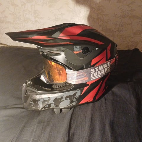 Tästä upeat sini kromiset Stunt Freaks Team ajolasit. Linssit ehjät ja hyvässä kunnossa.