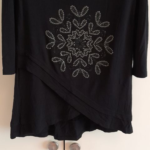 Desigualin musta pusero, koko L. Kainalo-kainalo n. 55 cm, olka-helma n. 70 cm. Alaspäin levenevät hihat.