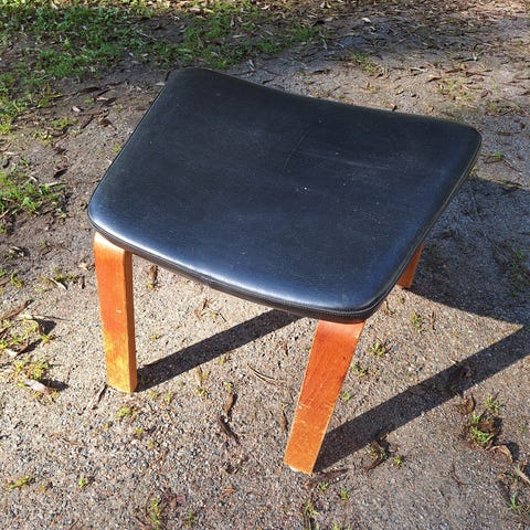 Vanha Rahi punaisella keinonahkalla, leveys/syvyys 45/30cm, korkeus 41cm.