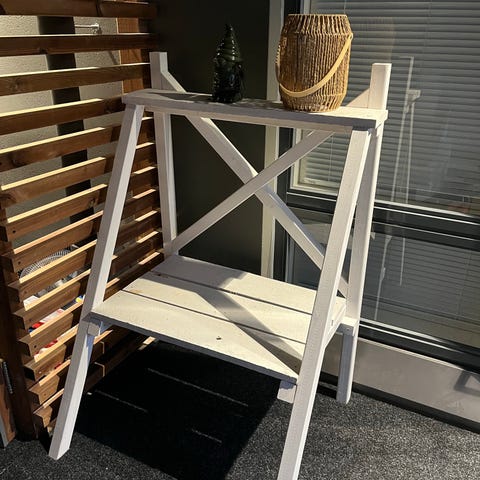Kukkataso kukkahylly parvekekalusteet puutarhakalusteet puupölkky jakkara parvekkeelle massiivipölkky härmälänranta härmälä pirkkala