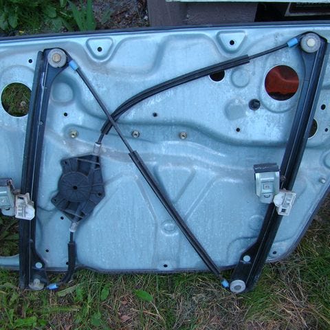 Passatin uusi kuskin oven lasinnostin ilman moottoria alkuperäisosana 3C1837461H. Sisältää koko oven sisäpellin.