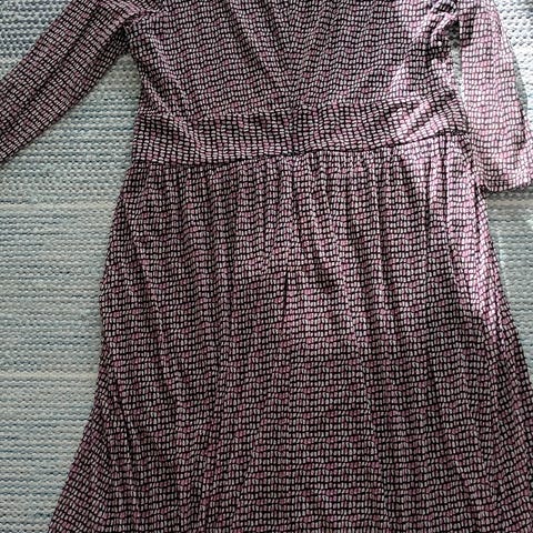 Uudenveroinen Esprit kesämekko aniliinia hieman liukaspintaista polyesteriä asetaattivuorilla. Koko pienehkö 44, parempi koolle 40-42. Mitat kai-kai 52cm, rinnanympärys 106cm, vyötärön leveys poikkileikkauksen kohdalla 48cm. Helma on tulppaanimainen, leveys 65cm, olka-helma 100cm. Sivuvetoketju. 7e mmm