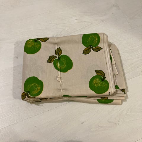 Ikean mallistossa vuonna 2007 ollut Anna Salanderin suunnittelema sisustuskangas. Tosi paksua sisustus-puuvillaa, iso puna-oranssi koko kankaan levyinen "vesimelonikuvio". Kankaan pituudessa on 3 kokonaista soikeaa kuviota. Yksi kuvio n. 150 x 60 cm. Punainen on "joulunpunaista" ja oranssi kirkas "appelsiini" ja erottuu punaisesta luonnossa paremmin kuin kuvissa. Kangas sopii pöytäliinaksi, verhoiksi, tyynynpäällisiin, verhoiluun. EDIT: Myynnissä 3 palaa. Näitä on kertaalleen käytetty juhlissa pöytäliinoina ja sitten pesty ja viikkailtu kaappiin. Jäljellä 2 kpl 150 x n.180cm ja yksi pala, jonka pituus on 300cm x leveys 150cm, isolle palalle hinta 30€.