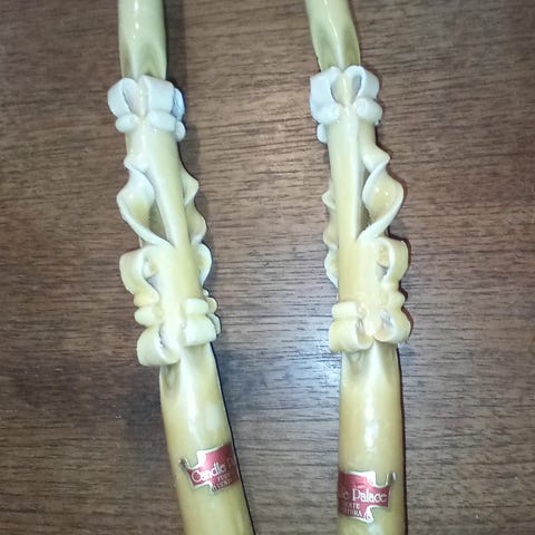 Uusi lasikynttilä jossa rottinkikori. Korkeus 14 cm.