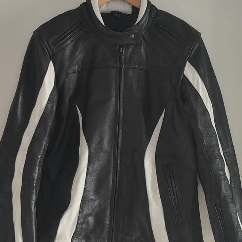 Mittatilaustyönä tehty Nakar-merkkinen moottoripyöräpuku mustaa nahkaa. Tehty 177 cm pitkälle, 80 kg miehelle.