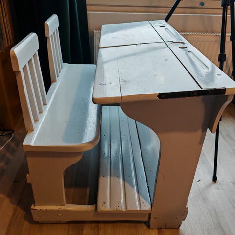 Kirkkaanpunainen Lyyti,lypsyjakkaraa 21x41x30cm.Uudenveroinen.