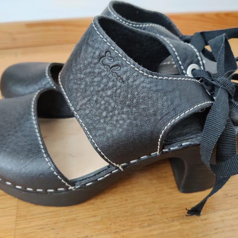 Uuttavastaavassa kunnossa olevat tummansiniset Calou-puukengät koko 37. Sisämitta 24 cm.