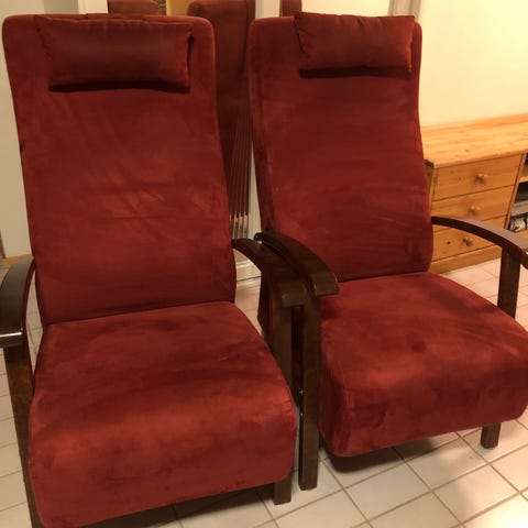 Myydään 2 kpl sinistä Alcantara kankaista nojatuolia 50€/ kpl1 rahi kaupanpäälle, sijaitsee Keuruulla, kulkeutuu Helsinkiin.