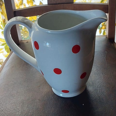 Myydään Arabian Ping Pong 1 litran kannu. Korkeus n. 13 cm, suuaukon halkaisija n. 10 cm.
