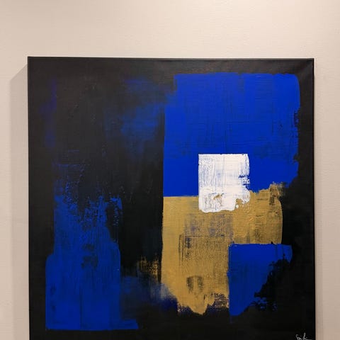 Iso akryyli maalaus. Nuori taiteilija.
