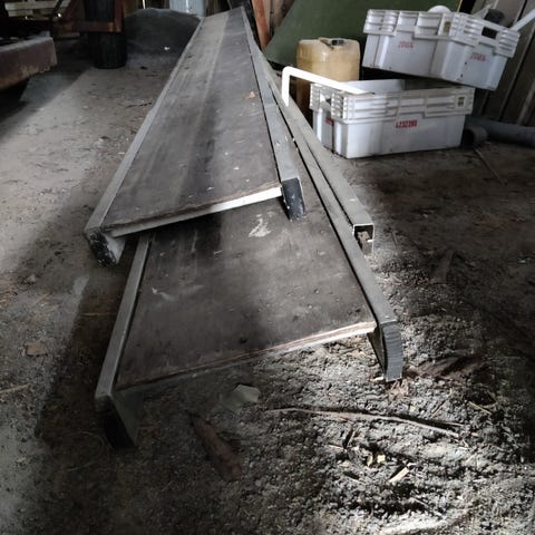 Alumiinitaso/ silta turkkilevystä tehty, mihin käyttöön ikinä keksitkään. Leveys/ pituus 241cm, syvyys 70cm, korkeus 19cm, paksuus 3/4mm. Pitkät sivut on kantattu tasoa tukevoittamaan, poikittaistuet niitattu myös 80cm välein. Ulkona säilytetty niin kuvissa likainen. Nouto. Kyytiin nostossa autetaan vaikka kevyt se onkin. Kuvissa näkyvät muut tavarat ei kuulu kauppaan. Ilmoitus poistetaan kun tuote on myyty.